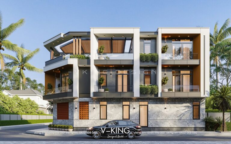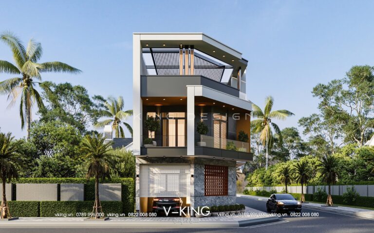 Tựa như một tác phẩm nghệ thuật giữa lòng đô thị, căn biệt thự 3 tầng VK25039 mang dáng dấp kiêu hãnh khi tọa lạc tại lô góc mở ra tầm nhìn thoáng đãng và không gian sống tràn ngập ánh sáng. Thiết kế không đơn thuần là sắp đặt hình khối, mà là sự hòa quyện giữa cái mạnh mẽ của kiến trúc hiện đại với cảm xúc mềm mại của thiên nhiên, từ đó tạo nên một tổng thể vừa cá tính, vừa tinh tế. Mỗi góc cạnh của biệt thự đều thể hiện rõ sự chỉn chu, khắt khe trong từng đường nét thiết kế – như thể ngôi nhà không chỉ để ở, mà còn để được ngắm nhìn và thưởng thức. Hôm nay, hãy cùng Kiến trúc VKing khám phá chi tiết mẫu thiết kế nhé