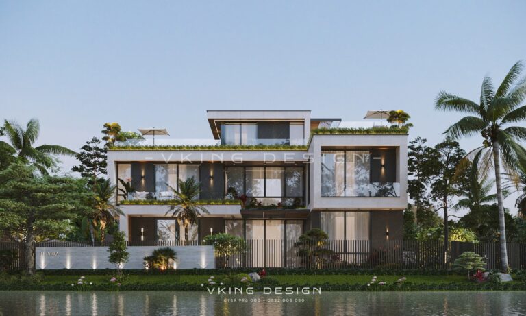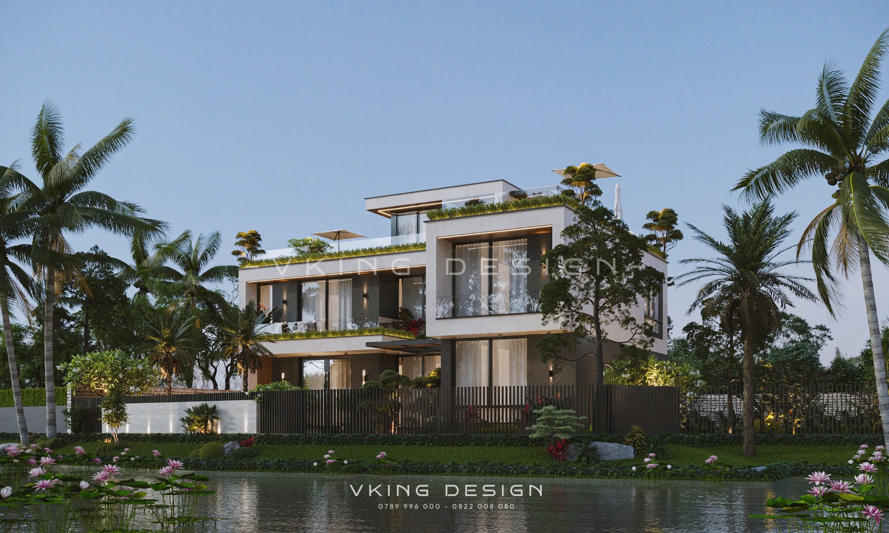 Tựa như một viên ngọc sáng bên hồ nước trong xanh, biệt thự hiện đại 3 tầng mái bằng VK25067 chinh phục mọi ánh nhìn ngay từ khoảnh khắc đầu tiên. Căn biệt thự chính là sự kết tinh của tư duy kiến trúc hiện đại, đơn giản mà tinh tế, nơi từng mảng tường, khung kính hay khoảng sân vườn đều là một câu chuyện về sự sang trọng nhưng thư thái. Không chỉ là nơi để ở, ngôi nhà còn là không gian để tận hưởng, để thả hồn giữa thiên nhiên và tìm lại sự cân bằng trong nhịp sống hiện đại. Hãy cùng Kiến trúc VKING khám phá vẻ đẹp ấn tượng của căn biệt thự để cảm nhận rõ hơn sức hút của một công trình mang đậm hơi thở thời đại và phong cách sống thượng lưu.