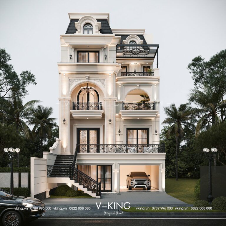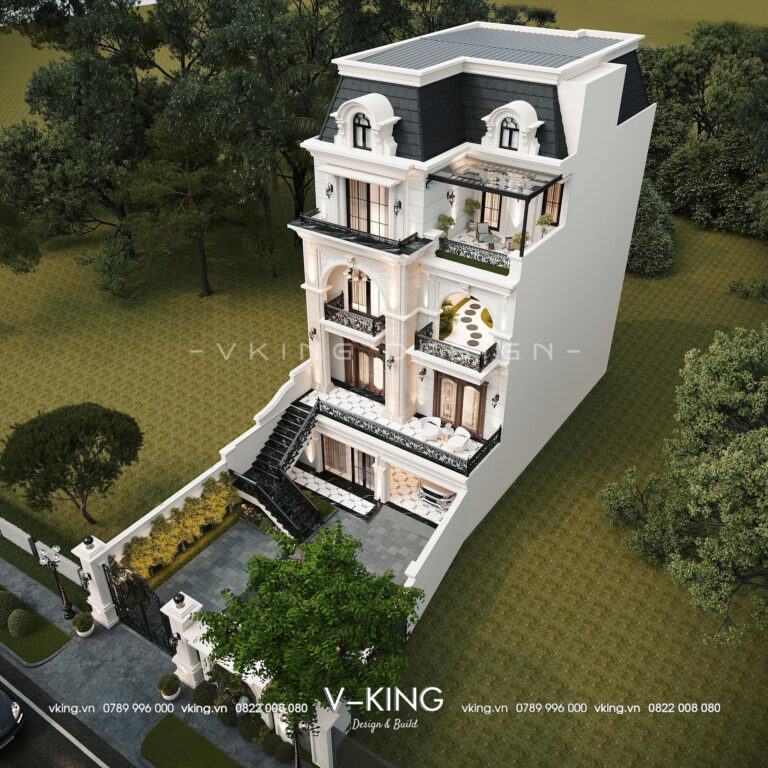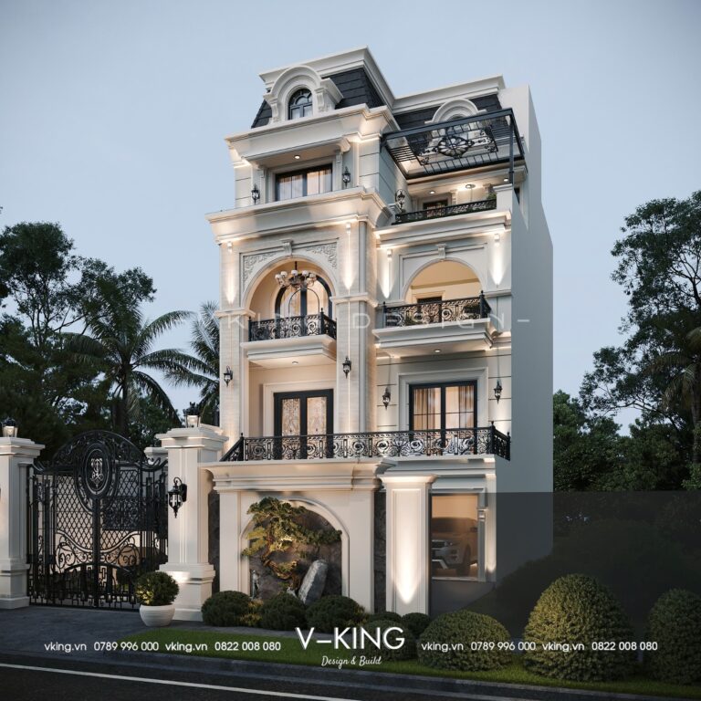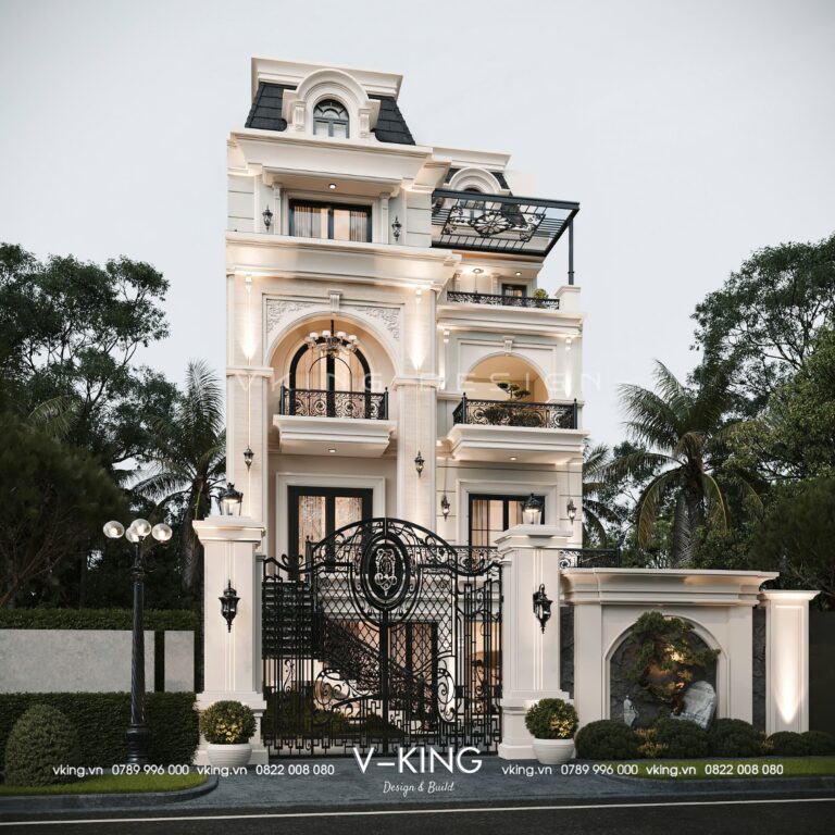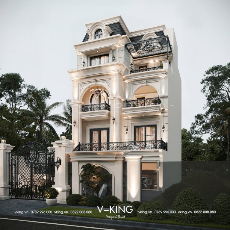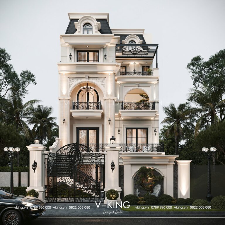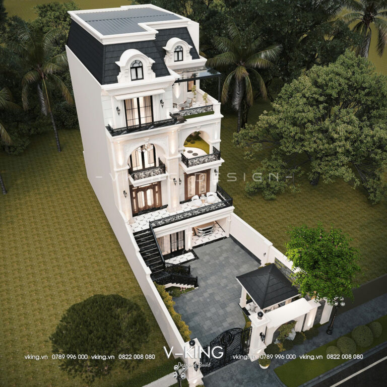 Tựa như một bản giao hưởng của nghệ thuật kiến trúc châu Âu cổ điển hòa quyện trong không gian hiện đại, căn biệt thự tân cổ điển 4 tầng mái Mansard VK25025 hiện lên đầy lộng lẫy và cuốn hút. Từng đường nét, từng gam màu, từng chi tiết kiến trúc đều được chăm chút tỉ mỉ, tạo nên một tổng thể kiêu sa, trang nhã. Hãy cùng Kiến trúc VKING khám phá mẫu thiết kế biệt thự VK25025 trong bài viết hôm nay nhé!