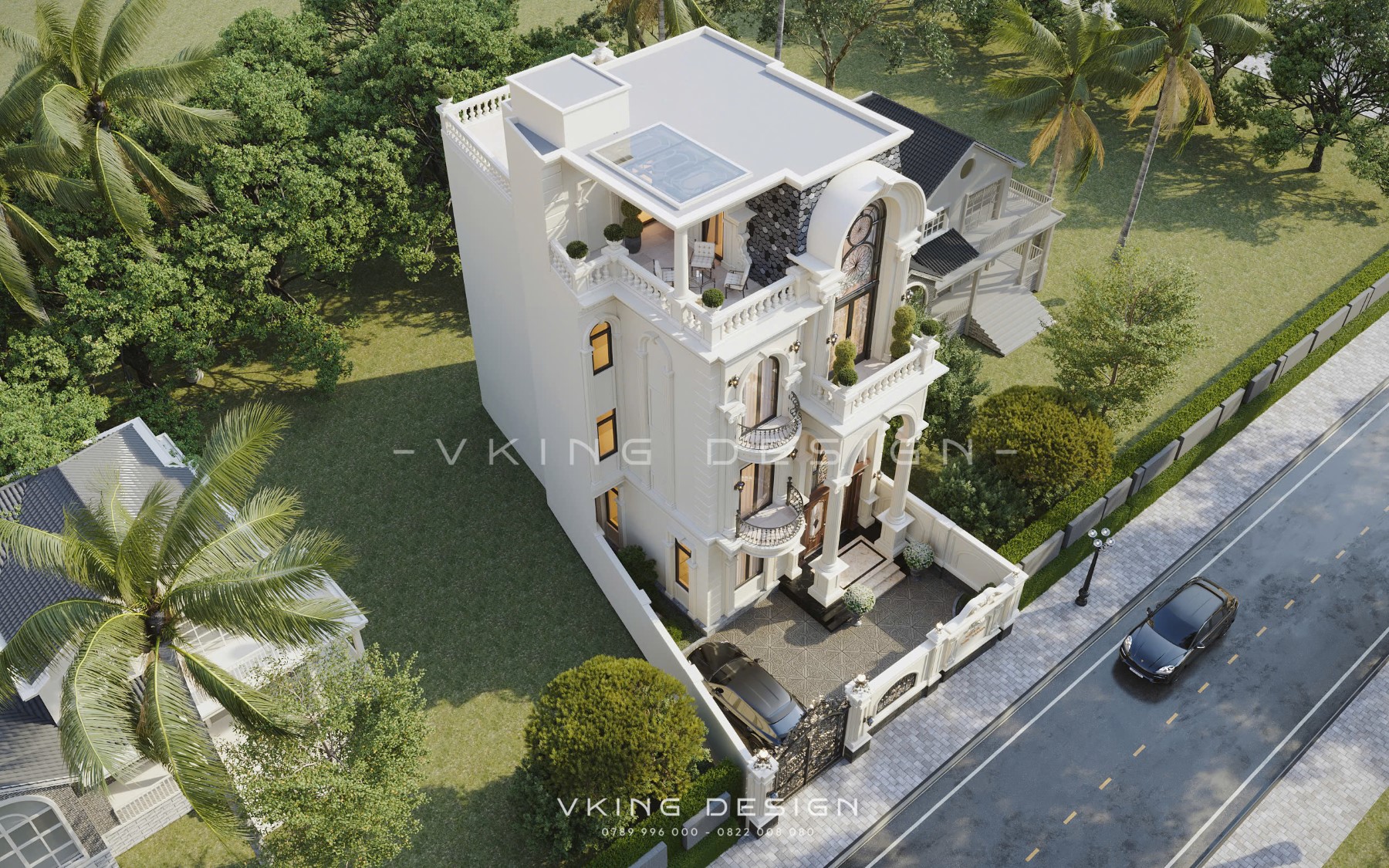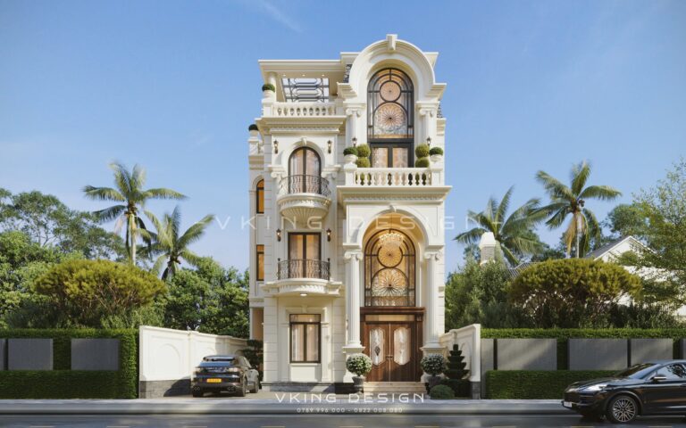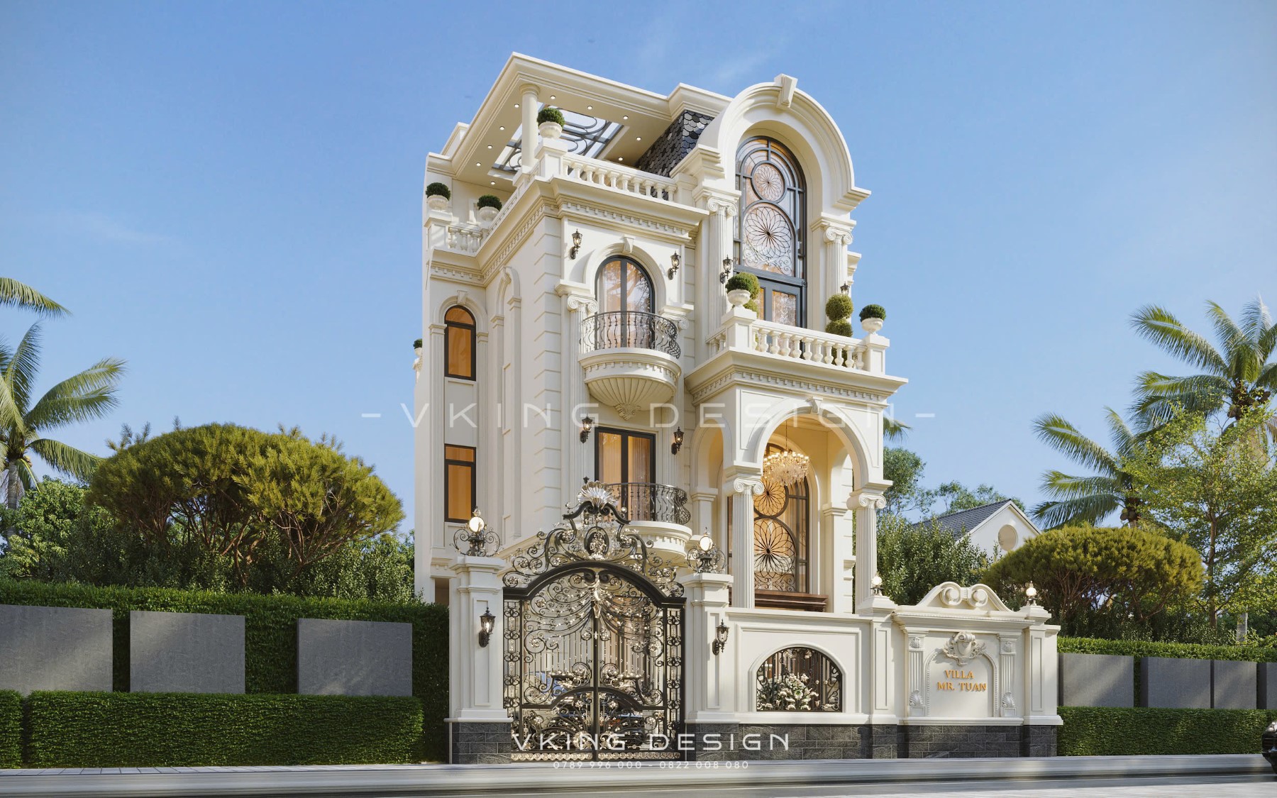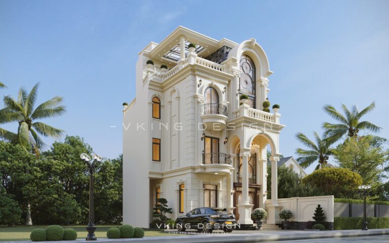 Mỗi góc nhìn hướng về biệt thự tân cổ điển 4 tầng 1 tum mái mansard VK25063 đều như chạm vào một khuôn hình đầy nghệ thuật, nơi kiến trúc trở thành cảm xúc và cái đẹp được thăng hoa thành dấu ấn riêng biệt. Mỗi góc cạnh của ngôi nhà đều toát lên nét duy mỹ, vừa hoài cổ vừa hiện đại, khiến không gian sống tựa như một bản giao hưởng nhiều cung bậc. Mái mansard quyền quý vươn cao, như lời khẳng định về vị thế và phong cách sống của chủ nhân ngôi nhà. Hãy cùng Kiến trúc VKING khám phá tuyệt tác biệt thự 4 tầng 1 tum VK25063 hành trình chạm đến vẻ đẹp vượt thời gian của phong cách tân cổ điển sang trọng và tinh tế nhé!