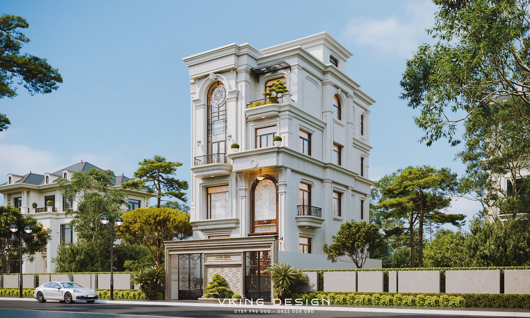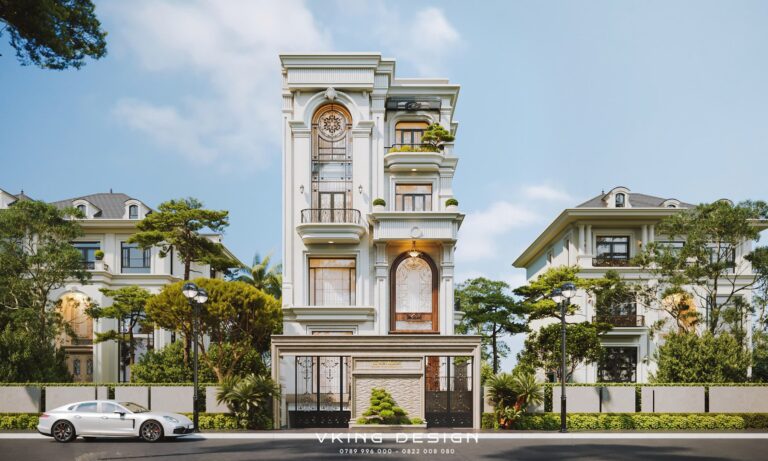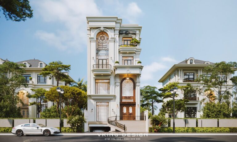 Dáng đứng thanh thoát giữa không gian phố xanh mát, căn biệt thự tân cổ điển 4 tầng 1 hầm VK26005 thu hút ánh nhìn bằng vẻ đẹp sang trọng, chỉn chu và đầy chiều sâu kiến trúc. Không phô trương cầu kỳ, căn biệt thự chinh phục người xem bằng tỷ lệ hài hòa, những đường nét cổ điển được chắt lọc tinh tế cùng cách tổ chức không gian thông minh, phù hợp với nhịp sống đô thị hiện đại. Hôm nay hãy cùng Kiến trúc VKING khám phá chi tiết trong bài viết dưới đây nhé!