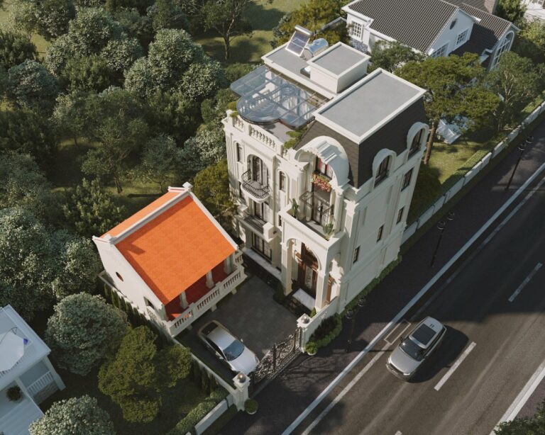 Nhà tân cổ điển từ lâu đã khẳng định vị thế trong ngành kiến trúc nhờ vào vẻ đẹp trường tồn, sang trọng và tinh tế. Không phô trương, không cầu kỳ như cổ điển thuần túy, cũng không quá đơn giản như phong cách hiện đại, tân cổ điển là sự giao thoa đầy tinh tế giữa cái cũ và cái mới. Căn nhà tân cổ điển 4 tầng là minh chứng điển hình cho sự kết hợp hoàn hảo ấy. Với tông màu trắng kem chủ đạo không chỉ làm sáng tổng thể mà còn nâng tầm các đường nét trang trí trở nên rõ nét, nổi bật dưới ánh nắng. Trong xu hướng hiện đại, khi con người ngày càng tìm về các giá trị bền vững và thẩm mỹ lâu dài thì tân cổ điển chính là sự lựa chọn lý tưởng, vừa sang trọng, vừa không lỗi mốt với thời gian.