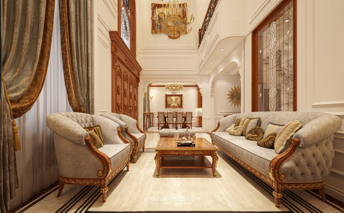 Mang trong mình vẻ đẹp của cả 2 thời đại, chính vì vậy mà nó phù hợp với mọi loại hình nhà ở cũng như mọi gia chủ yêu thích nét đẹp quý tộc xưa và nay. Là trung tâm của ngôi nhà, là không gian sinh hoạt, tiếp khách và cũng là nơi thể hiện sự bề thế lẫn tính cách của gia chủ, vì thế thiết kế nội thất phòng khách luôn được kiến trúc sư VKING đặc biệt quan tâm hơn cả.