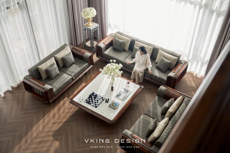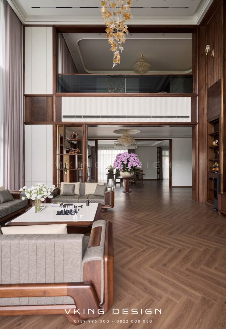 Chạm đến chuẩn mực sống mới với phòng khách hiện đại sử dụng gỗ óc chó