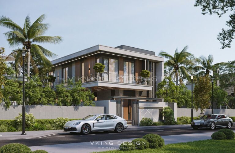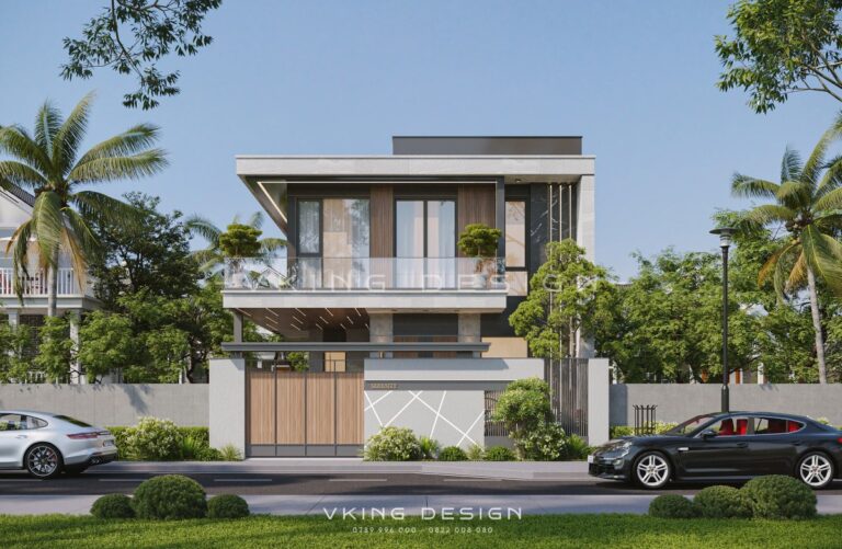 Trong xu hướng kiến trúc nhà ở hiện nay, biệt thự phố hiện đại đang trở thành lựa chọn được nhiều gia chủ yêu thích nhờ sự kết hợp hài hòa giữa thẩm mỹ, công năng và không gian sống xanh. Mẫu biệt thự phố mang phong cách thiết kế tối giản nhưng đầy tinh tế, nổi bật với các khối kiến trúc vuông vức, mạnh mẽ và mạch lạc. Toàn bộ công trình được xây dựng theo bố cục cân đối, mặt tiền rộng rãi và thoáng đãng, giúp ngôi nhà nổi bật giữa khu phố. Tông màu chủ đạo là sự kết hợp của trắng, xám và nâu gỗ, mang đến cảm giác sang trọng nhưng vẫn gần gũi với thiên nhiên. Các mảng tường lớn được xử lý khéo léo bằng vật liệu đá ốp và kính, vừa tăng tính thẩm mỹ vừa giúp không gian nội thất đón được nhiều ánh sáng tự nhiên. Nhìn tổng thể, căn biệt thự phố này không chỉ là nơi ở mà còn là biểu tượng của phong cách sống hiện đại, tiện nghi và đẳng cấp.
