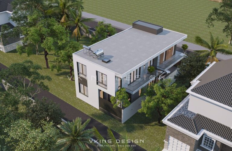 Mái bằng là một trong những điểm nhấn quan trọng trong thiết kế của mẫu biệt thự phố hiện đại, góp phần tạo nên vẻ đẹp mạnh mẽ và tinh giản cho tổng thể công trình. Không giống như những kiểu mái dốc truyền thống, mái bằng mang đến cảm giác gọn gàng, vuông vức và phù hợp với phong cách kiến trúc hiện đại. Trong mẫu nhà này, phần mái được thiết kế với các đường nét dứt khoát, kết hợp cùng hệ mái đua nhẹ ra phía trước giúp tạo chiều sâu cho mặt tiền.. Phần mái có thể tận dụng làm khu vực đặt bồn nước, hệ thống năng lượng mặt trời nếu cần. Nhờ thiết kế mái bằng tinh tế, căn biệt thự phố không chỉ giữ được vẻ hiện đại, sang trọng mà còn đảm bảo sự tiện nghi và bền vững trong quá trình sử dụng lâu dài.