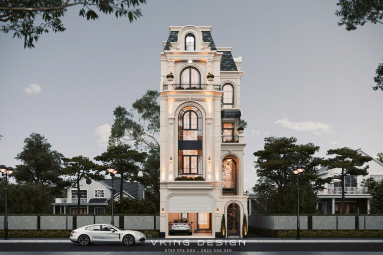 Không phải công trình nào cũng khiến người ta chậm bước khi đi ngang qua. Biệt thự phố tân cổ điển 4 tầng 1 tum mái Pháp VK26006 tạo nên sức hút ấy bằng một dáng đứng thanh lịch, một vẻ đẹp không cần lên tiếng nhưng vẫn đủ sức khẳng định vị thế. Giữa không gian đô thị hiện đại, ngôi nhà hiện lên như một lát cắt kiến trúc châu Âu tinh tế – nơi những đường cong cổ điển, tỷ lệ chuẩn mực và cảm xúc thẩm mỹ được hòa quyện để kể nên câu chuyện về một không gian sống sang trọng, sâu lắng và đầy khí chất. Hãy cùng Kiến trúc VKING khám phá một mẫu biệt thự phố 4 tầng 1 tum mái Pháp mang khí chất riêng giữa lòng đô thị trong bài viết hôm nay nhé!