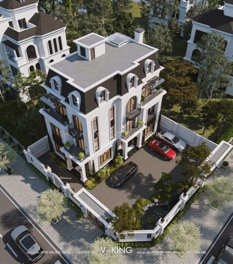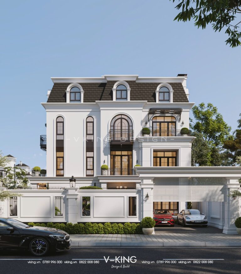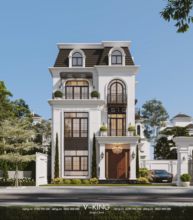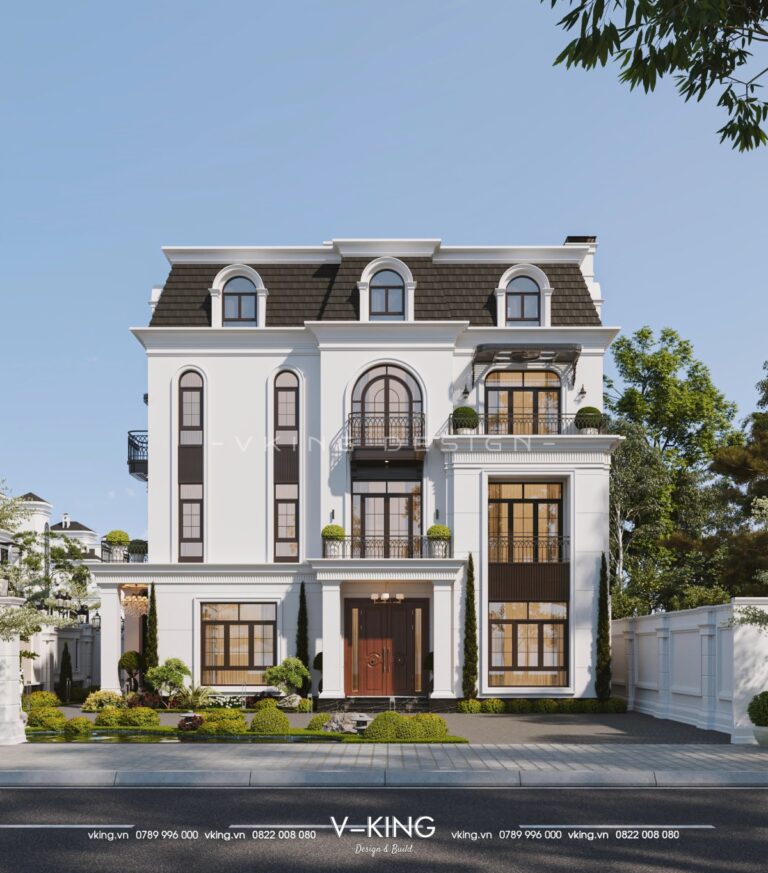 Thiết kế biệt thự tân cổ điển 4 tầng mái mansard sang trọng
