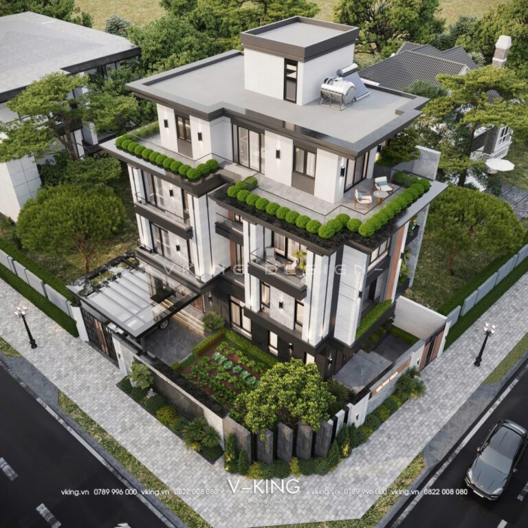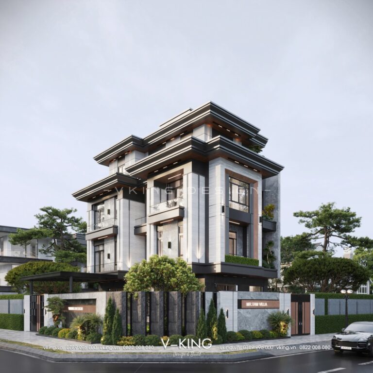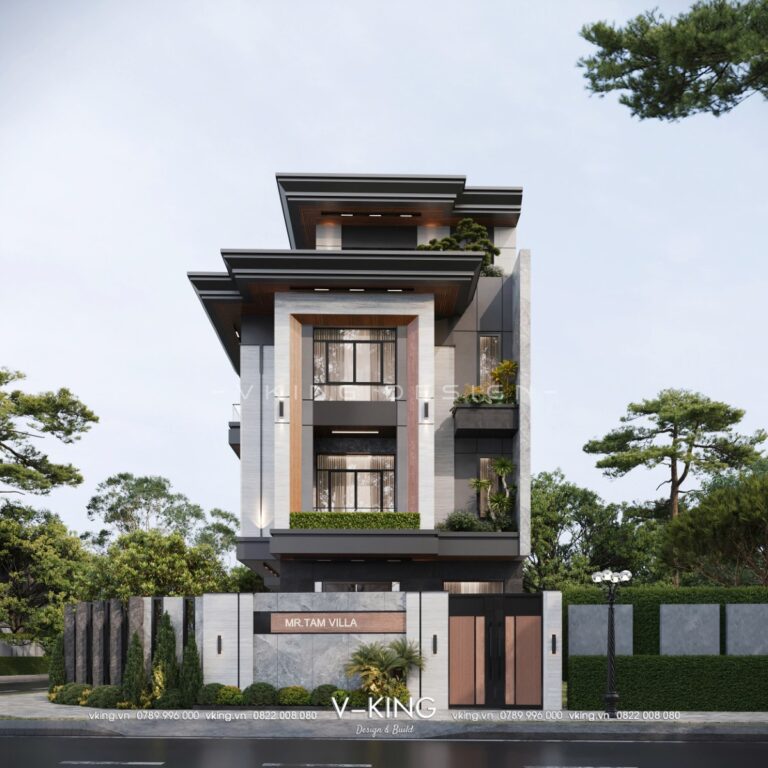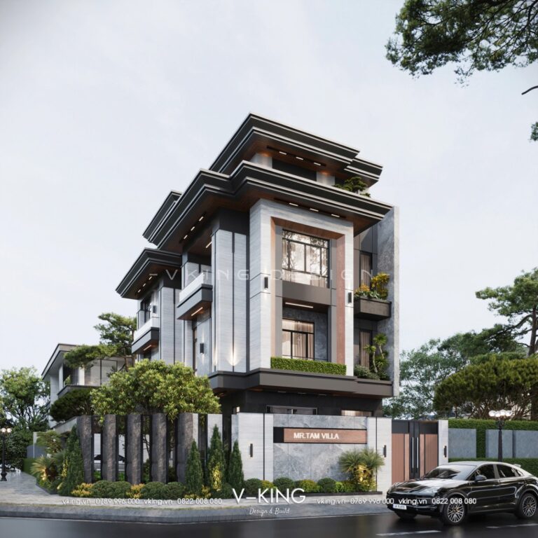 Giữa nhịp sống đô thị ngày càng sôi động, những công trình kiến trúc hiện đại đang dần trở thành biểu tượng cho phong cách sống thời thượng và tư duy thẩm mỹ tinh tế. Đặc biệt, với những lô đất nằm ở vị trí lô góc – nơi hai mặt tiền tiếp giáp trực tiếp với không gian đô thị – việc thiết kế nhà phố không chỉ dừng lại ở bài toán công năng mà còn là thách thức về tạo hình, ánh sáng và sự hòa hợp với cảnh quan xung quanh. Trong bối cảnh ấy, mẫu thiết kế nhà phố 3 tầng 1 tum được KTS VKing thiết kế như một dấu ấn kiến trúc phóng khoáng, nơi mỗi đường nét đều phản ánh trọn vẹn tinh thần hiện đại và khát vọng sống giữa lòng thành phố năng động.