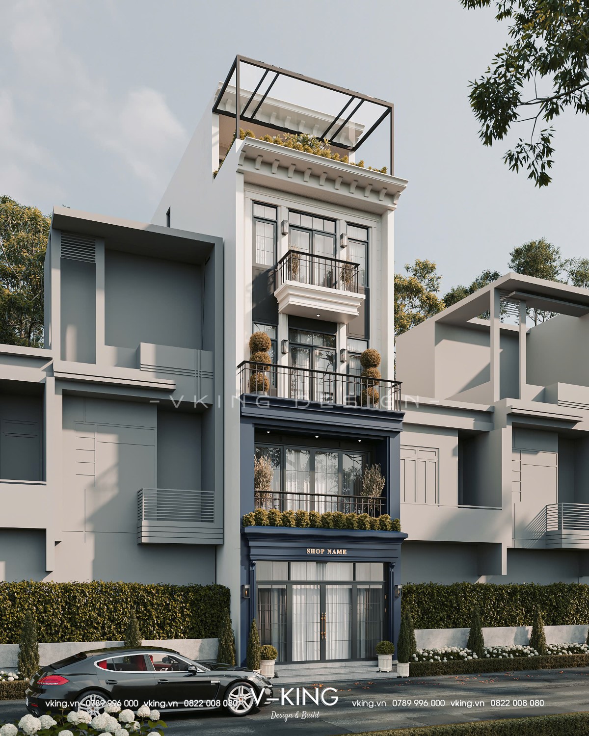 Giữa lòng thành phố hiện đại – nơi nhịp sống hối hả và các dãy phố cao tầng chen chúc nhau nhưng vẫn có những công trình mang trong mình vẻ đẹp vượt thời gian, là sự giao thoa hài hòa giữa tinh thần cổ điển thanh lịch và hơi thở đương đại tinh gọn. Không quá cầu kỳ, cũng chẳng phô trương, một ngôi nhà phố tân cổ điển vẫn có thể khiến người ta ngước nhìn bằng chính sự chỉn chu, chuẩn mực trong từng đường nét kiến trúc. Hôm nay, hãy cùng Kiến trúc VKING khám phá chi tiết mẫu thiết kế nhà phố VK25030 đẹp nhẹ nhàng đơn giản tại Hà Nội nhé!